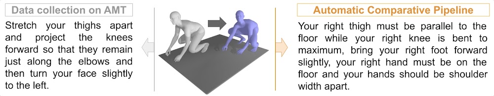 Then, we collected over 6 thousands human-written annotations on Amazon Mechanical Turk, and further adapted the automatic captioning pipeline from PoseScript to generate hundred of thousands automatic training annotations at no cost: